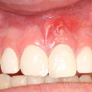 • در صورتی که فیستول وجود داشته باشد (یک سوراخ در سقف دهان)، دندانپزشک به احتمال زیاد یک ماده نازک و انعطاف‌پذیر را وارد فیستول می‌کند تا منشأ عفونت را مشخص کند. سپس این ماده در زیر نور پرتوی ایکس ظاهر می‌شود که می‌تواند محل انتهای فیستول و در نتیجه منشأ آبسه را به دندانپزشک نشان دهد. پس از مشخص شدن محل آن، عفونت تخلیه شده و فیستول نیز به خودی خود بسته شده و بهبود می‌یابد.